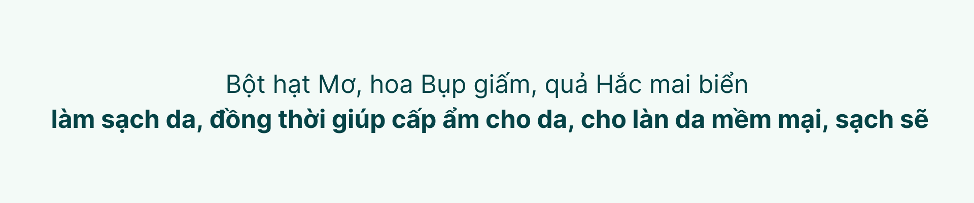 | Bột hạt Mơ Giúp loại bỏ tế bào chết, lớp da xỉn màu và bã nhờn tích tụ trên bề mặt da. Thành phần này làm da mềm mịn, sáng hơn và hỗ trợ quá trình tái tạo tế bào mới. Đồng thời, nó giúp tăng khả năng hấp thụ dưỡng chất của các sản phẩm chăm sóc da sử dụng sau đó. |