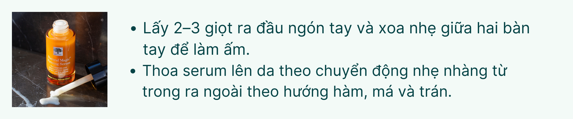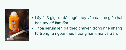 - Kết cấu nhẹ, dễ thấm: Sản phẩm mang lại cảm giác nhẹ nhàng và không nhờn dính trên da — thấm nhanh và lý tưởng để kết hợp với các sản phẩm chăm sóc da khác (ví dụ: kem và dầu).