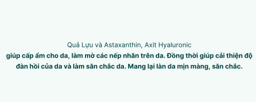 | Axit Hyaluronic Giữ ẩm tự nhiên, giảm khô da, làm mềm da và giúp làn da săn chắc, trẻ trung. |